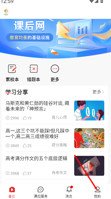 1、打開課后網軟件進入主界面,找到底部導航欄右下角的 “我的” 圖標,點擊進入個人中心頁面。