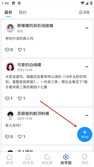 2、在高考圈頁面,點擊右下角【發動態】按鈕。