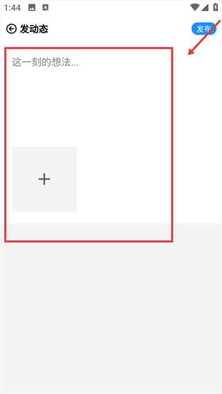 3、在輸入框中填寫內容,同時可點擊【+】按鈕添加圖片素材,完善動態內容。