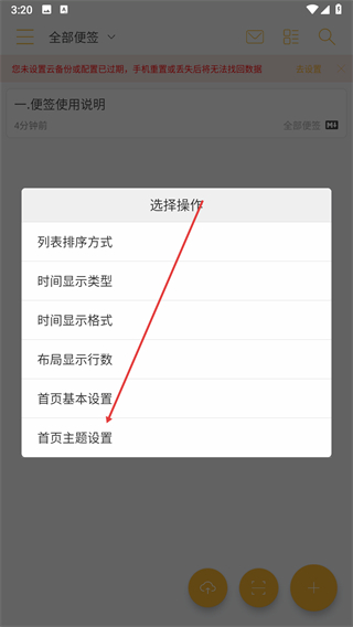 2、在操作菜單中找到首頁主題設(shè)置選項,點擊進入主題設(shè)置頁。