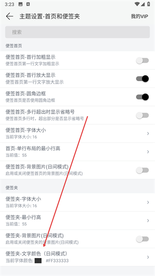 3、在主題設(shè)置頁找到便簽夾文字顏色選項,點擊進入顏色選擇界面。