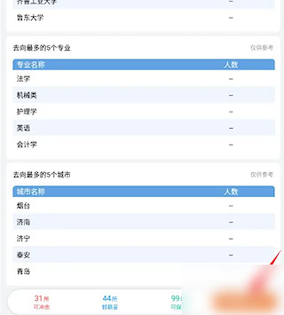 2、進入后,可獲得往年同分考生去向最多的院校、專業(yè)、城市等信息。