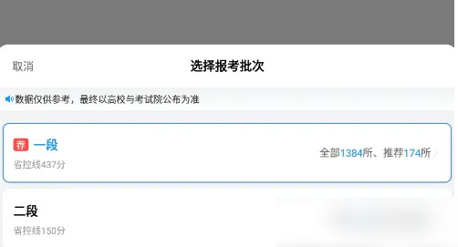 4、選擇報考批次,進一步分析可報考的大學。
