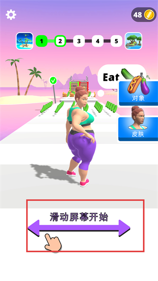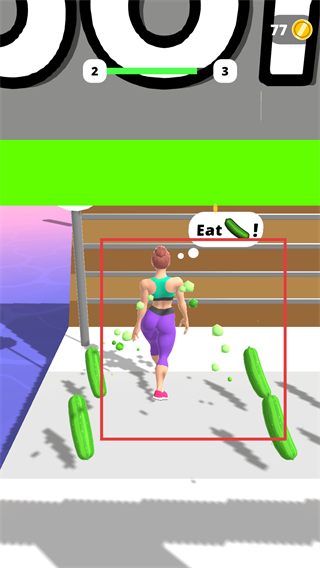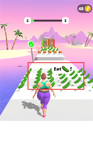 2、在跑道上收集【黃瓜】,避開高熱量的【漢堡】,跟隨【Eat黃瓜】提示,保持前進節奏。