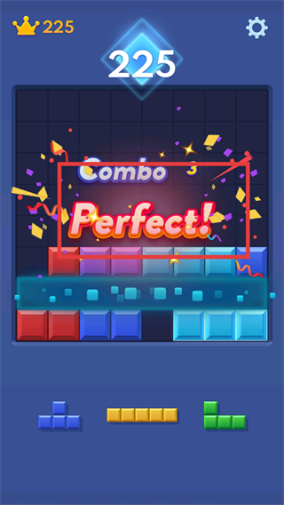3、觀察方塊形狀與網(wǎng)格空位,靈活調(diào)整擺放順序,通過一次消除多行或多列觸發(fā)暴擊加分。