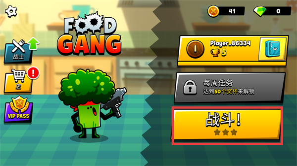 1、在【Food-Gang】主界面,點擊戰(zhàn)斗按鈕進入游戲。