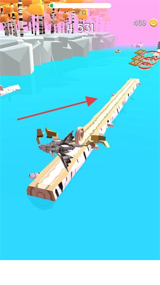 1、操控工具沿木板推進,收集沿途道具的同時積累分?jǐn)?shù),將初始分?jǐn)?shù)提升至【14531】。