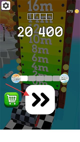 4、完成關(guān)卡后總分?jǐn)?shù)達【20400】,點擊箭頭按鈕進入下一關(guān),也可通過【商城】消耗金幣強化工具。