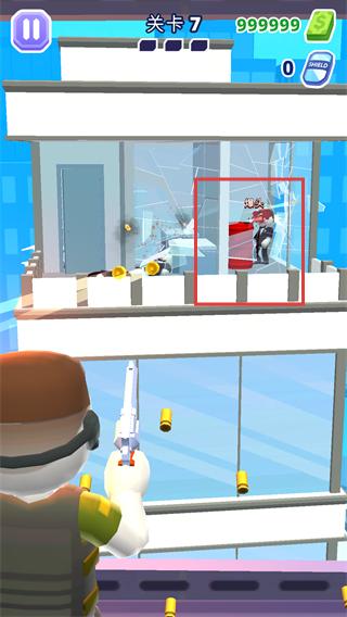 1、3D立體場景搭配火柴人造型,玻璃破碎與子彈炸裂特效,帶來沉浸式射擊樂趣與視覺沖擊。