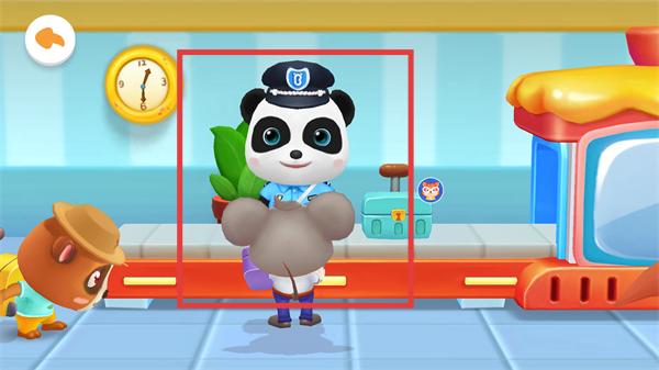 1、在場景中找到【紅框內的熊貓警察角色】,與其互動開啟后續的安檢任務流程。
