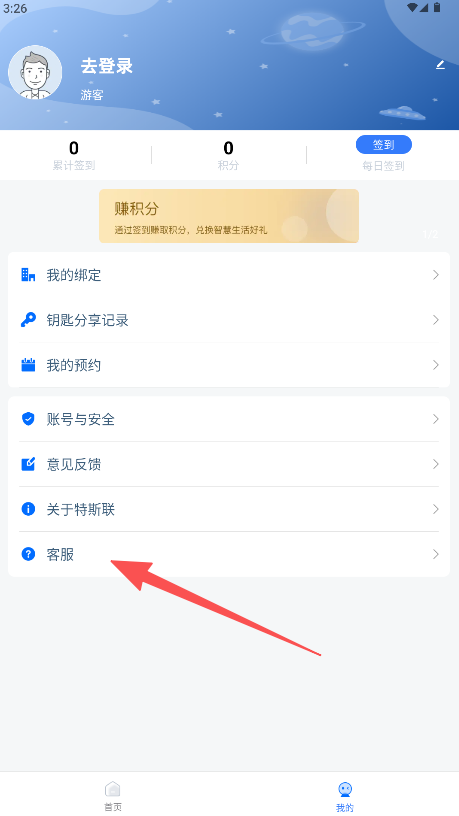 2、在“我的”頁(yè)面底部找到“客服”選項(xiàng)。