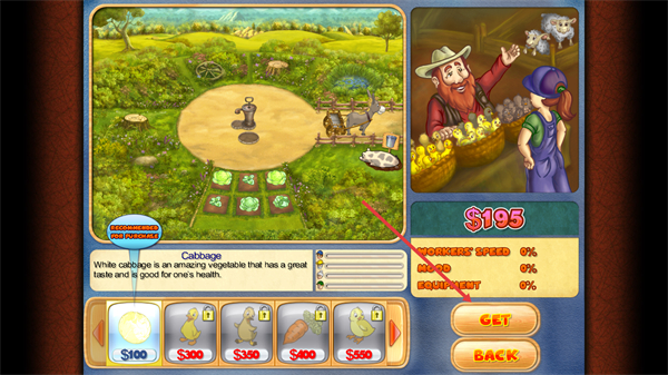 4、選中卷心菜種子后,點擊【GET】按鈕,即可將種子種植到對應(yīng)區(qū)域,完成卷心菜的種植步驟以推進流程。