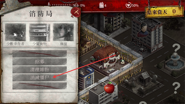 1、在消防局界面選擇【消滅僵尸】選項,可清理區域內僵尸,提升場景安全性,推進游戲進程。