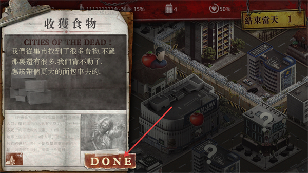 4、完成【收獲食物】任務后,出現對話提示,點擊【DONE】確認,結束當天流程。