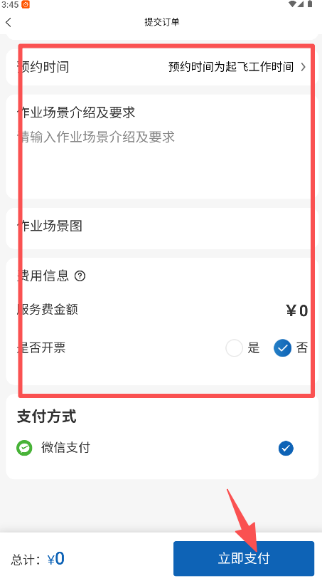 3、下滑頁面選擇服務與時間后點擊底部“立即支付”。