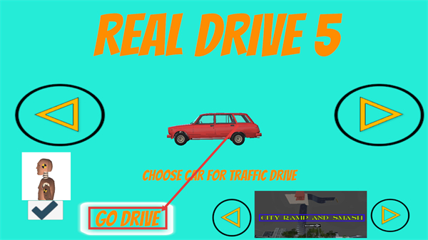 1、在【REAL-DRIVE-5】界面選定車輛后,點(diǎn)擊被標(biāo)注的【GO-DRIVE】按鈕,即可進(jìn)入【TRAFFIC-DRIVE】對(duì)應(yīng)的駕駛環(huán)節(jié)。