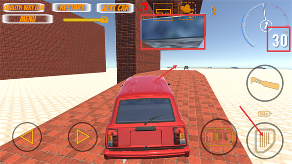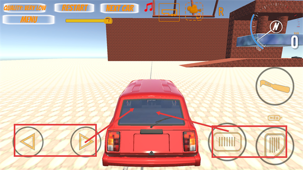 2、進(jìn)入駕駛場景后,通過左右方向鍵控制車輛轉(zhuǎn)向,借助油門-剎車按鈕調(diào)節(jié)車速,推進(jìn)駕駛進(jìn)程。