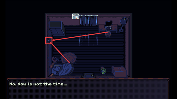 2、進(jìn)入場景后,留意被標(biāo)注的裝置,但當(dāng)前提示“No.-Now-is-not-the-time...”,暫不互動,繼續(xù)推進(jìn)場景探索。