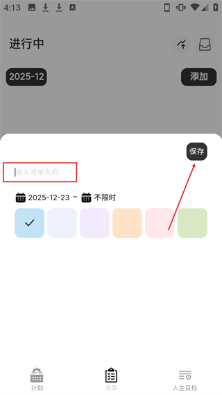 3、在添加清單的彈窗中,填寫【輸入清單名稱】后,點(diǎn)擊【保存】按鈕,可完成清單創(chuàng)建。