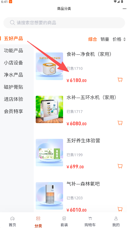 2、在商品分類頁面瀏覽或搜索如“食補—凈食機”等目標商品。
