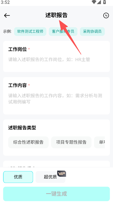 3、選擇報告類型后點擊一鍵生成,等待軟件完成內容創作。