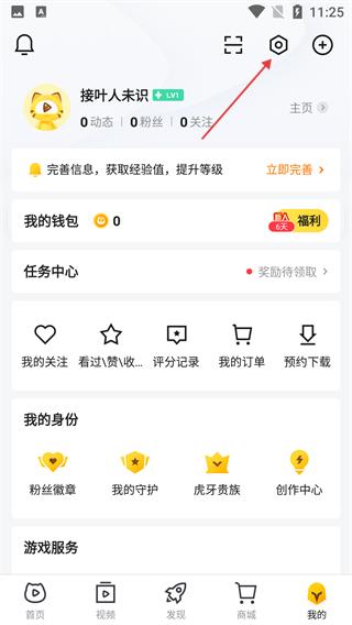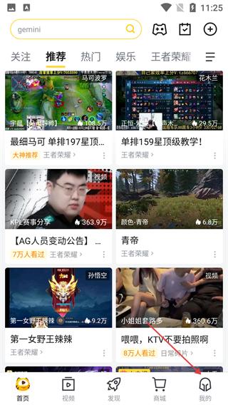 在“虎牙直播”窗口中,點擊右下方“我的”選項符號。