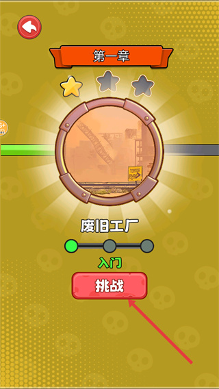 1、在【第一章-廢舊工廠】界面點擊【挑戰】按鈕,進入入門關卡開啟游戲挑戰。