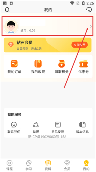 2、進(jìn)入對應(yīng)頁面,按照提示箭號,點擊個人信息。