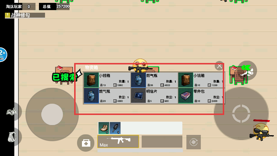 3、打開物資箱后,收集小錢箱、燃氣瓶、明信片等物資,積累總值。